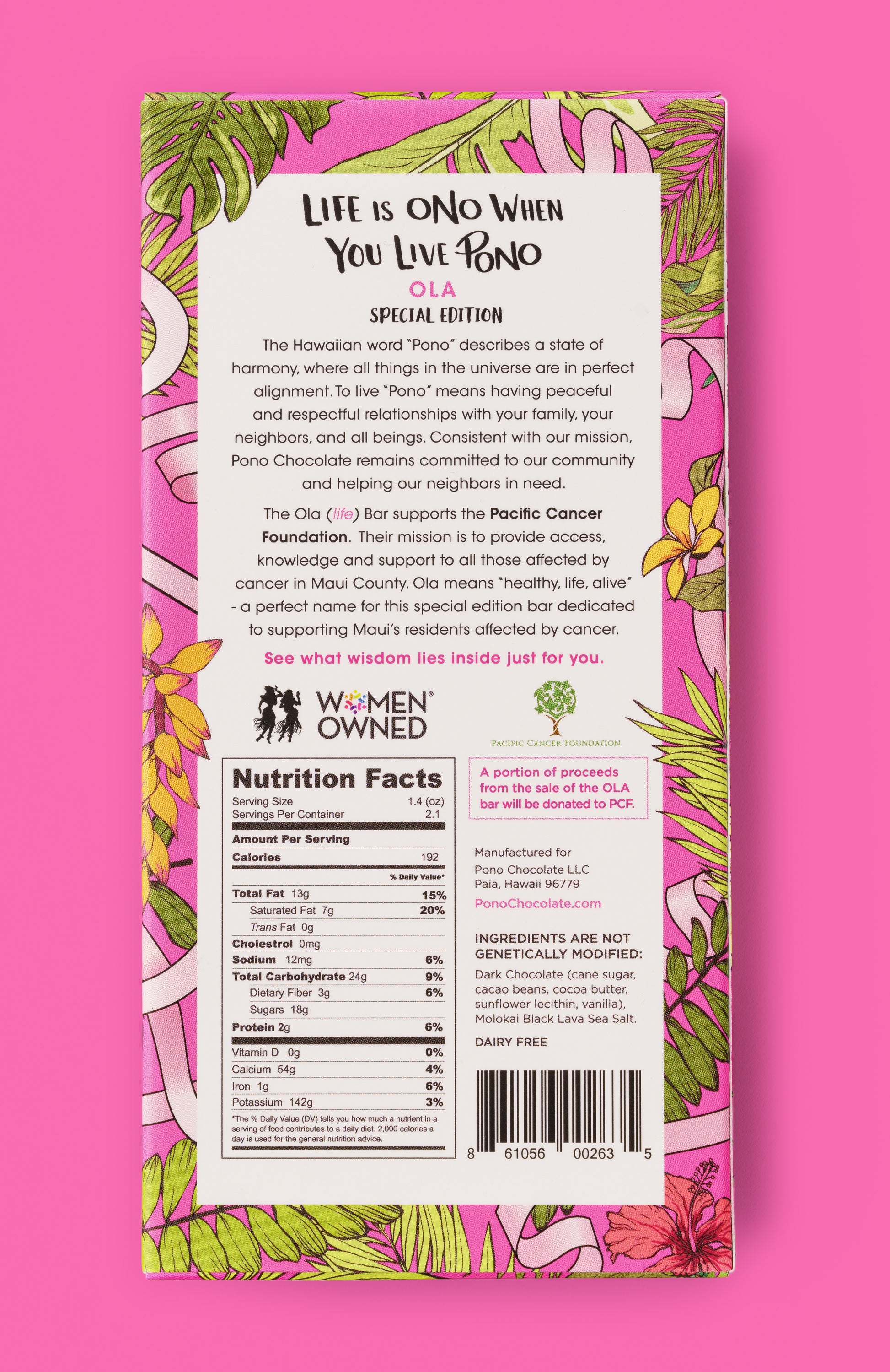 Ola - Dark Chocolate and Moloka'i Black Lava Sea Salt - 3oz bar